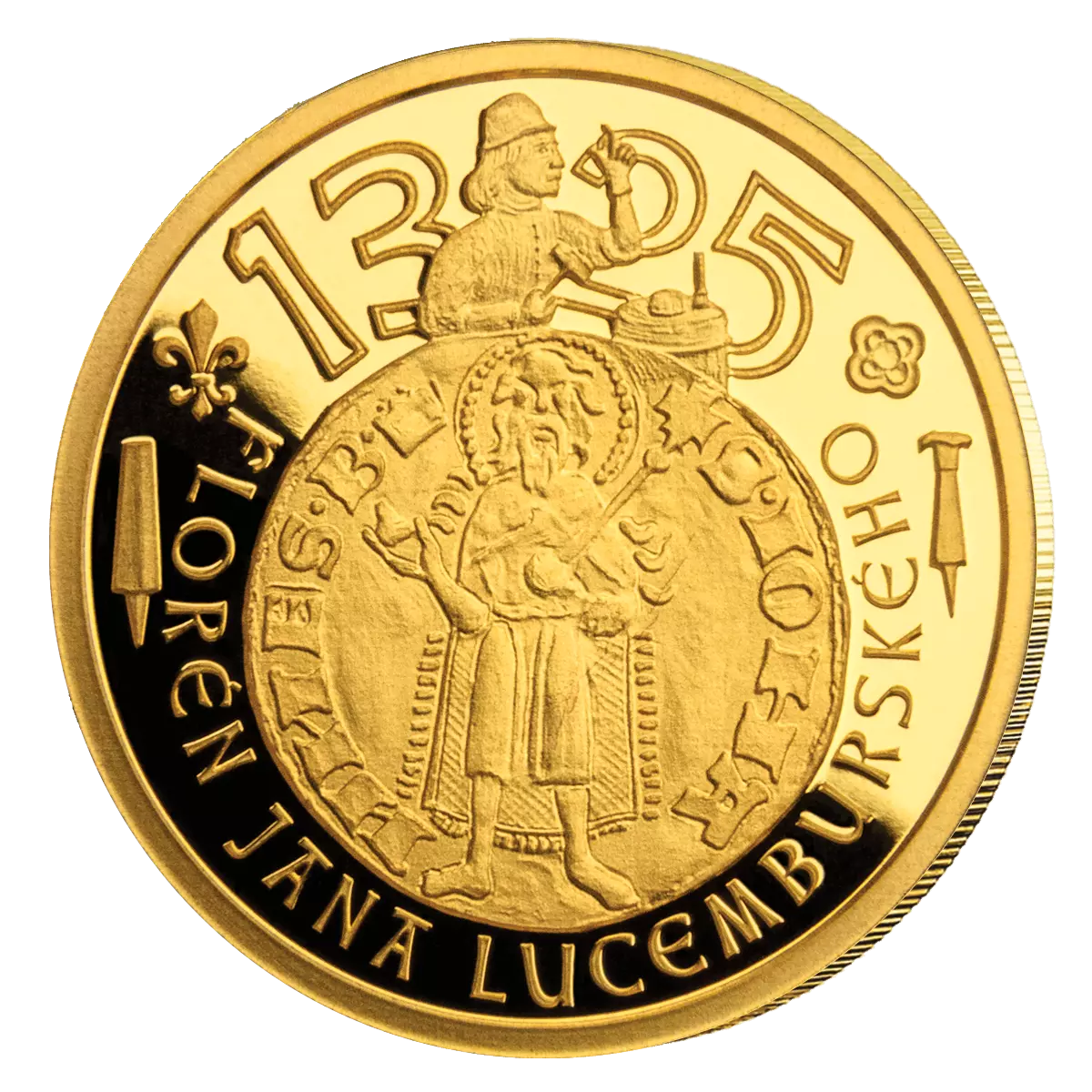 Tato mimořádná výroční emise vzdává hold vůbec první zlaté minci českých dějin – florénu Jana Lucemburského, jehož ražba byla zahájena v pražské mincovně roku 1325. Mince z ryzího zlata 999,9/1000 připomíná okamžik, kdy se české království zařadilo mezi přední mocnosti Evropy a Praha se stala prvním městem severně od Alp, kde se tato zlatá měna razila. Florén otevřel cestu k pozdější slávě Karla IV. a stal se tak trvalým odkazem kulturního dědictví i tradic našeho mincovnictví.