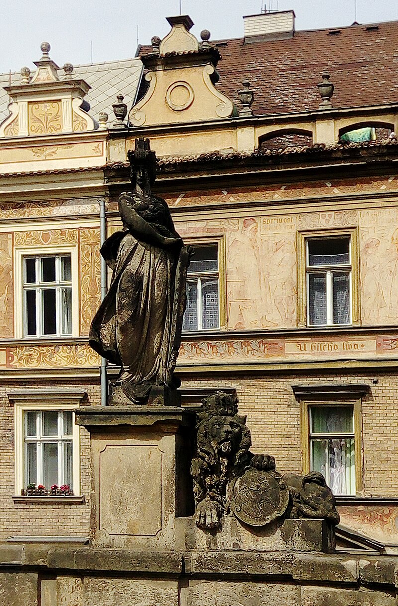 Čechie na ní najdete nad všemi ostatními postavami. Hynaisovi pro ni stála modelem budoucí významná malířka Marie Valadonová, která si tehdy – ve svých šestnácti letech – vydělávala jako akrobatka. I proto ji autor umístil právě na hrazdu v horní části opony. Majestátní sochu Čechie nalezneme i uprostřed terasy pražského Národního muzea. V ruce třímá meč a na Václavské náměstí shlížela mnohem dříve, než známější Myslbekův svatý Václav. Krásná, hrdá a bojovná, taková je ochránkyně českých zemí. Mýtickou Čechii obvykle uvidíte s taseným mečem a spatřit ji můžete na mnoha uměleckých dílech z doby národního obrození, kdy chránila české země před útlakem a kdy k ní Čechové vzhlíželi jako k symbolické patronce národa. V době českého národního vzepjetí dostávaly jméno Čechie sportovní kluby, hotely, firmy nebo i slavné motocykly ze stejnojmenného podniku.