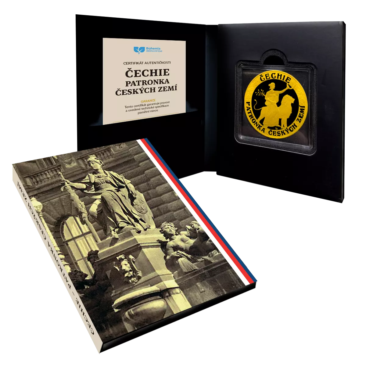 Alegorie Čechie s bílým lvem – symbol hrdosti a odvahy – přichází na minci, která spojuje čistotu kovu, špičkové umělecké zpracování a prestiž oficiálního platidla. Ryzí zlato 999,9/1000 a impozantní průměr 45 mm dávají motivu dechberoucí možnost pro čitelnost detailů; kvalita proof-like zvýrazní kontrast mezi zrcadlovými plochami a jemným matem reliéfu. Navíc je použita světově unikátní technika ražby – mistrovství, které zvládne jen několik mincoven na světě. Návrh českého výtvarníka MgA. Miroslava Schovance podtrhuje noblesu tématu, reverz potvrzuje oficiální mezinárodní statut mince. Každý kus je uložen v luxusním sběratelském albu a doprovází jej číslovaný certifikát autentičnosti.