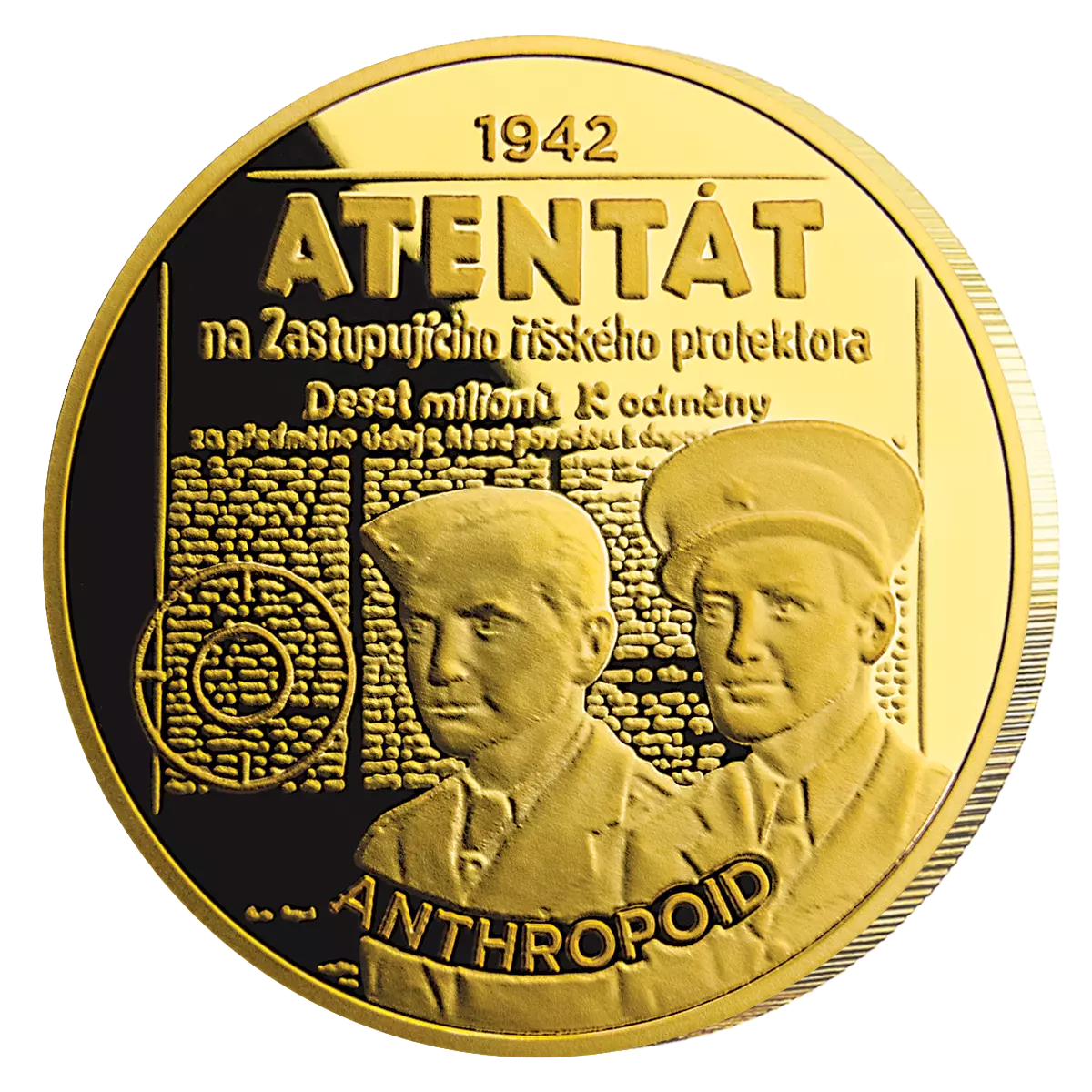 Největší hrdinství druhé světové války se stalo motivem unikátní ražby Operace Anthropoid. Tento unikátní sběratelský kousek připomíná jediný úspěšný atentát na vysoce postaveného nacistického představitele za druhé světové války a vzdává hold neochvějné odvaze československých parašutistů.