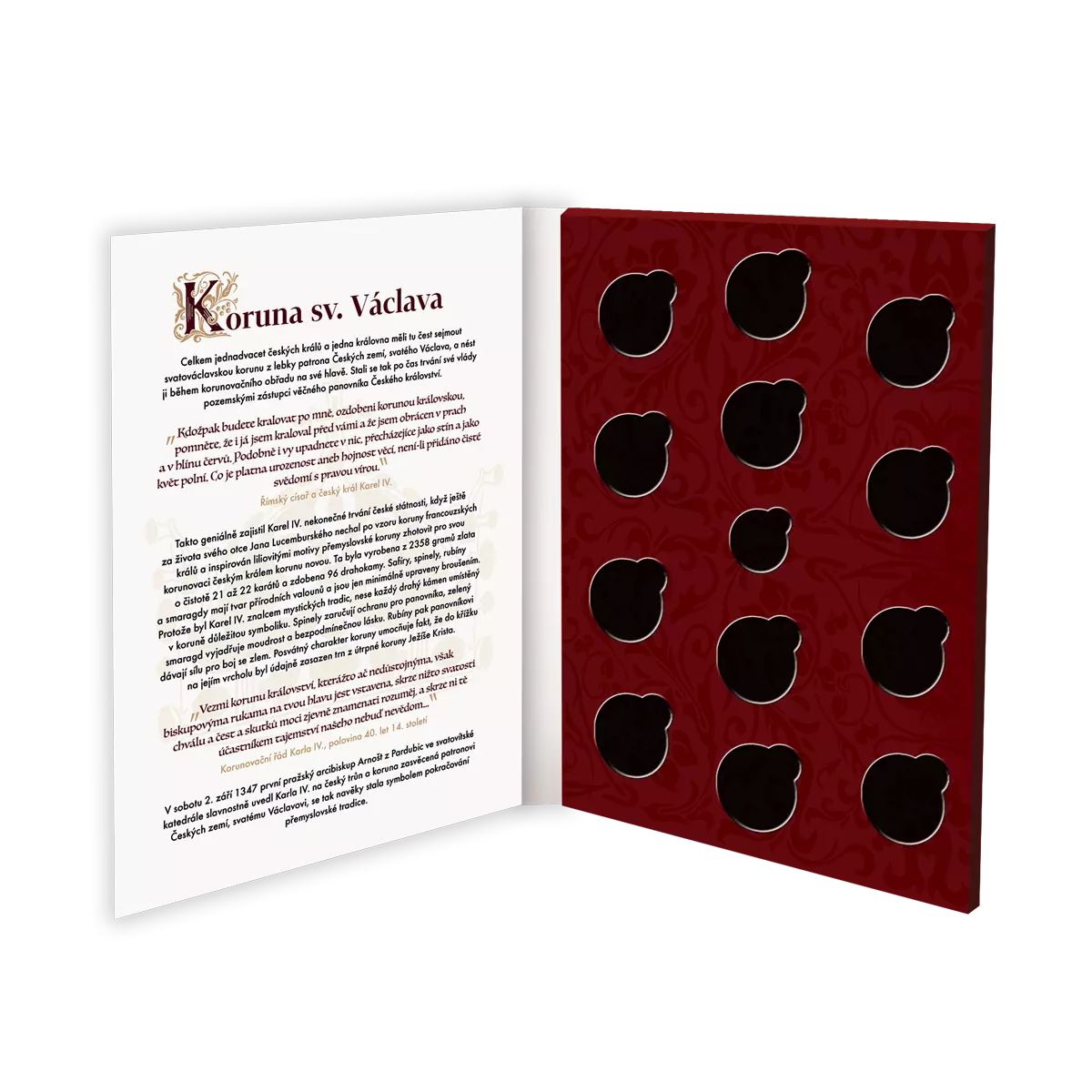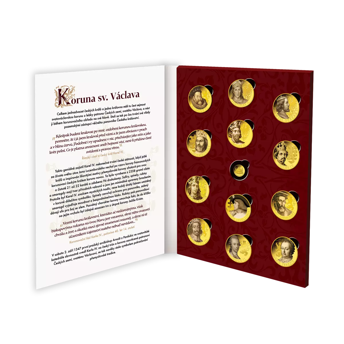 Portréty korunovaných českých králů na ryzím zlatem zušlechtěných pamětních ražbách jsou v této jedinečné kolekci zcela poprvé provedené unikátní technologií kolorování v barvě sépie.