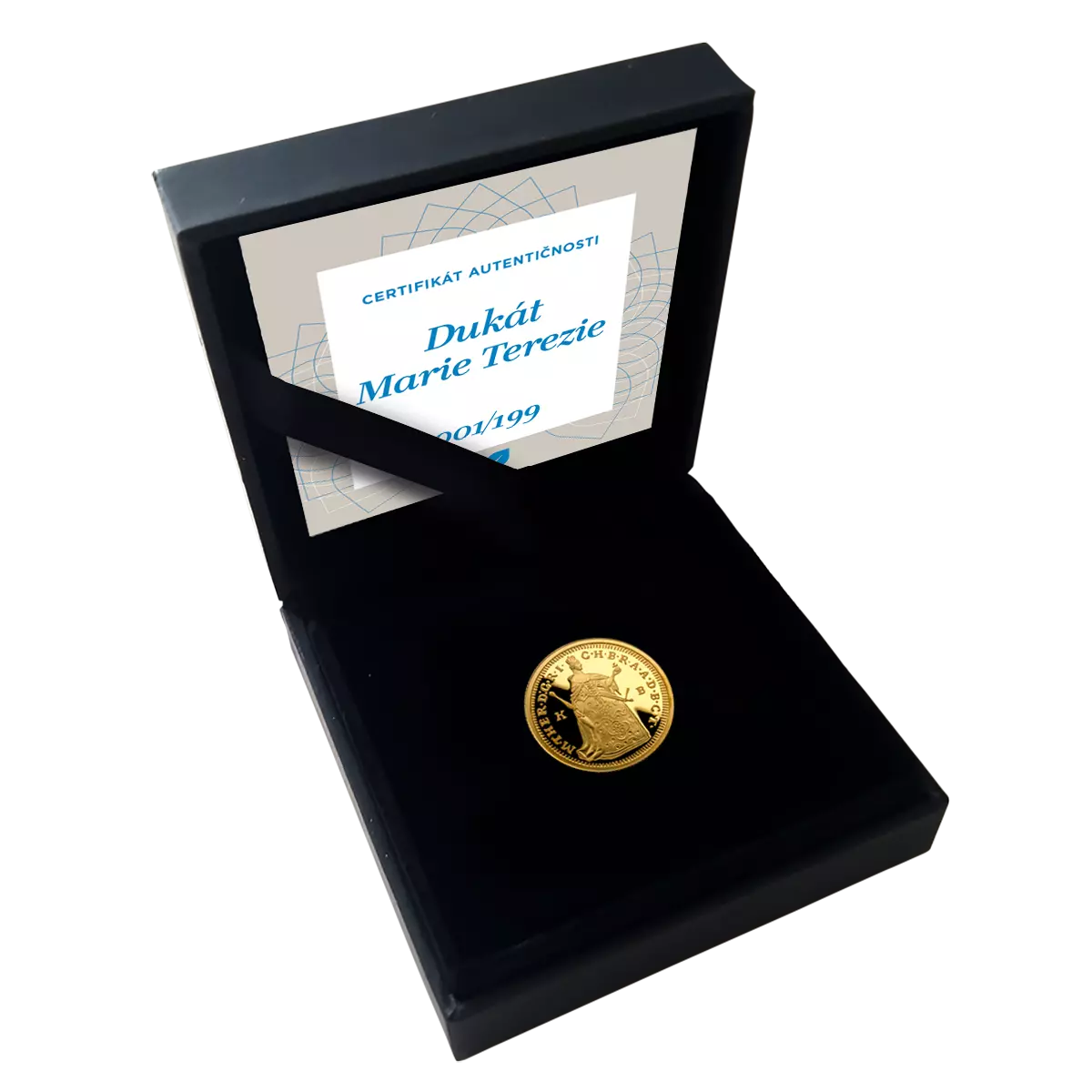Představujeme prestižní pamětní minci inspirovanou dukátem Marie Terezie – jediné ženy na českém trůně, jejíž reformy i osobnost formovaly střední Evropu na generace dopředu. Tato mince je vyražena do 1/10 unce ryzího zlata 999,9/1000 a navazuje na tradici dukátů, které byly ve své době považovány za nejtvrdší měnu střední Evropy. Jedná se o precizně zpracovaný sběratelský exemplář s původním portrétem panovnice a jejími vladařskými atributy – korunou, žezlem a jablkem – doplněný o historickou značku mincovny KB, která odkazuje na slavnou kremnickou ražbu.