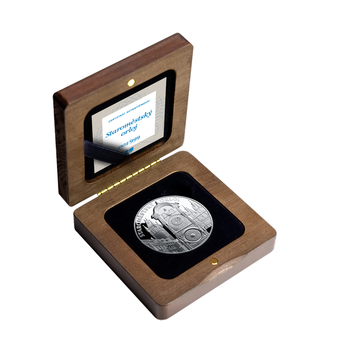 Unikátní ražba ve vysokém reliéfu znázorňuje pražský astronomický orloj na Staroměstském náměstí . Toto jedinečné umělecké dílo je raženo do 1 unce stříbra o ryzosti 999/1000 ve striktně nízké limitaci 999 kusů. Průměr 45 mm umožňuje vyniknout každému preciznímu detailu motivu. Díky provedení ve vysokém reliéfu vypadá orloj realisticky, doslova vystupuje z ražby. Numismat vzešel z produkce ryze české Bohemia mincovny, jejíž produkty máme tu čest exkluzivně distribuovat. Každá ražba je individuálně puncovaná Českým puncovním úřadem a spolu s číslovaným certifikátem pravosti uložena v luxusním dřevěném boxu.