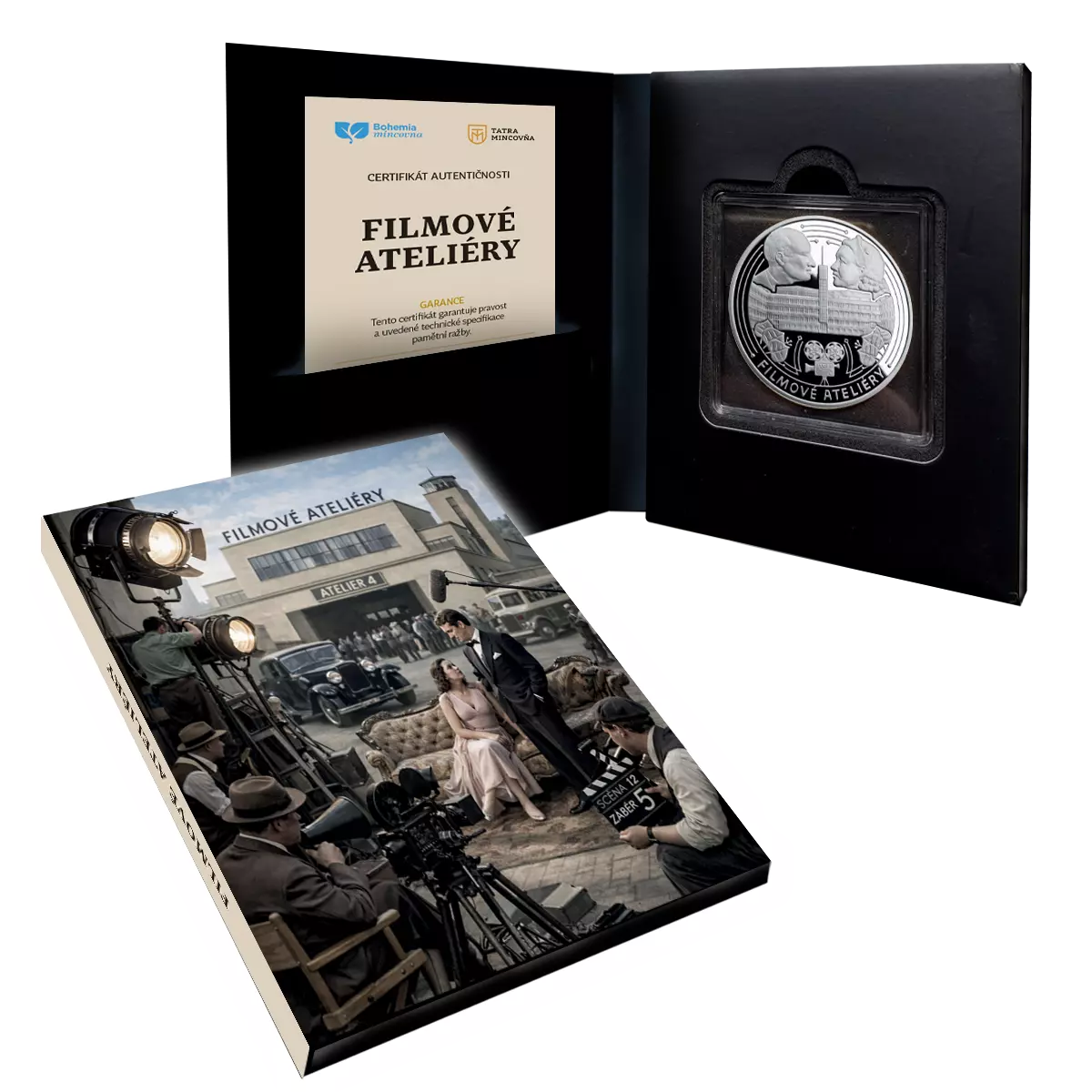 Filmové ateliéry, jejímuž motivu dominuje ikonická budova ve své době nejmodernějších ateliérů pro vznik zvukového filmu v Evropě, která rozepjala svá křídla v Praze na Barrandově v roce 1933, a naplnila tak podnikatelskou vizi pozdějšího českého filmového magnáta Miloše Havla. Profilové portréty Adiny Mandlové a Oldřicha Nového, jak je známe z legendárního filmu Kristián, motiv skvěle doplňují.