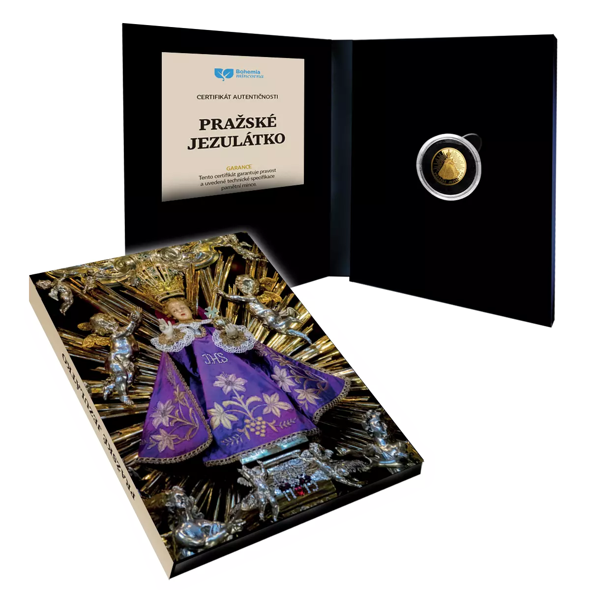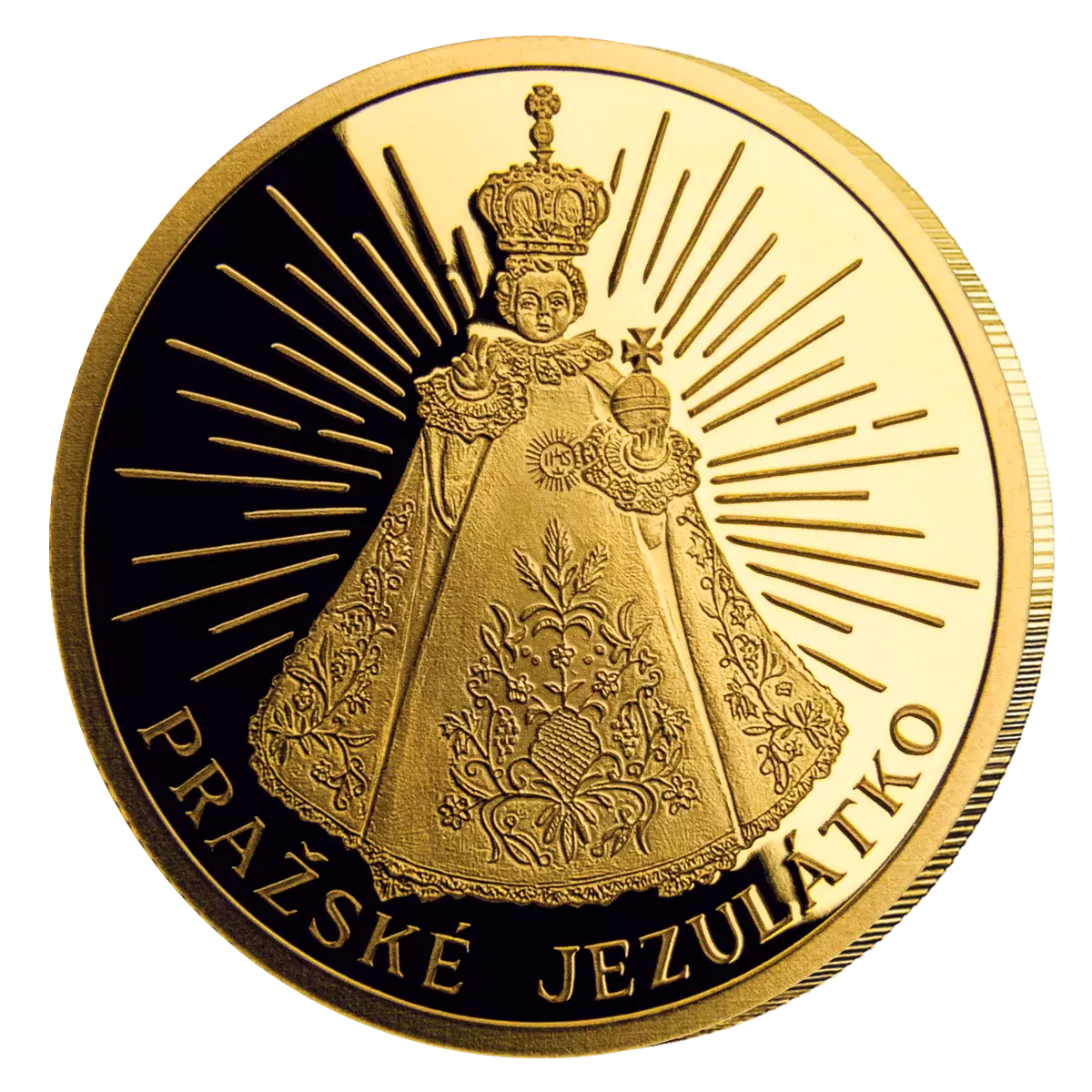 Tato výjimečná zlatá mince spojuje hluboké duchovní téma s absolutní technickou dokonalostí. Motiv Pražského Jezulátka, jednoho z nejsilnějších symbolů české historie a víry, je ztvárněn v ryzím zlatě 999,9/1000, bez jakýchkoliv kompromisů.
