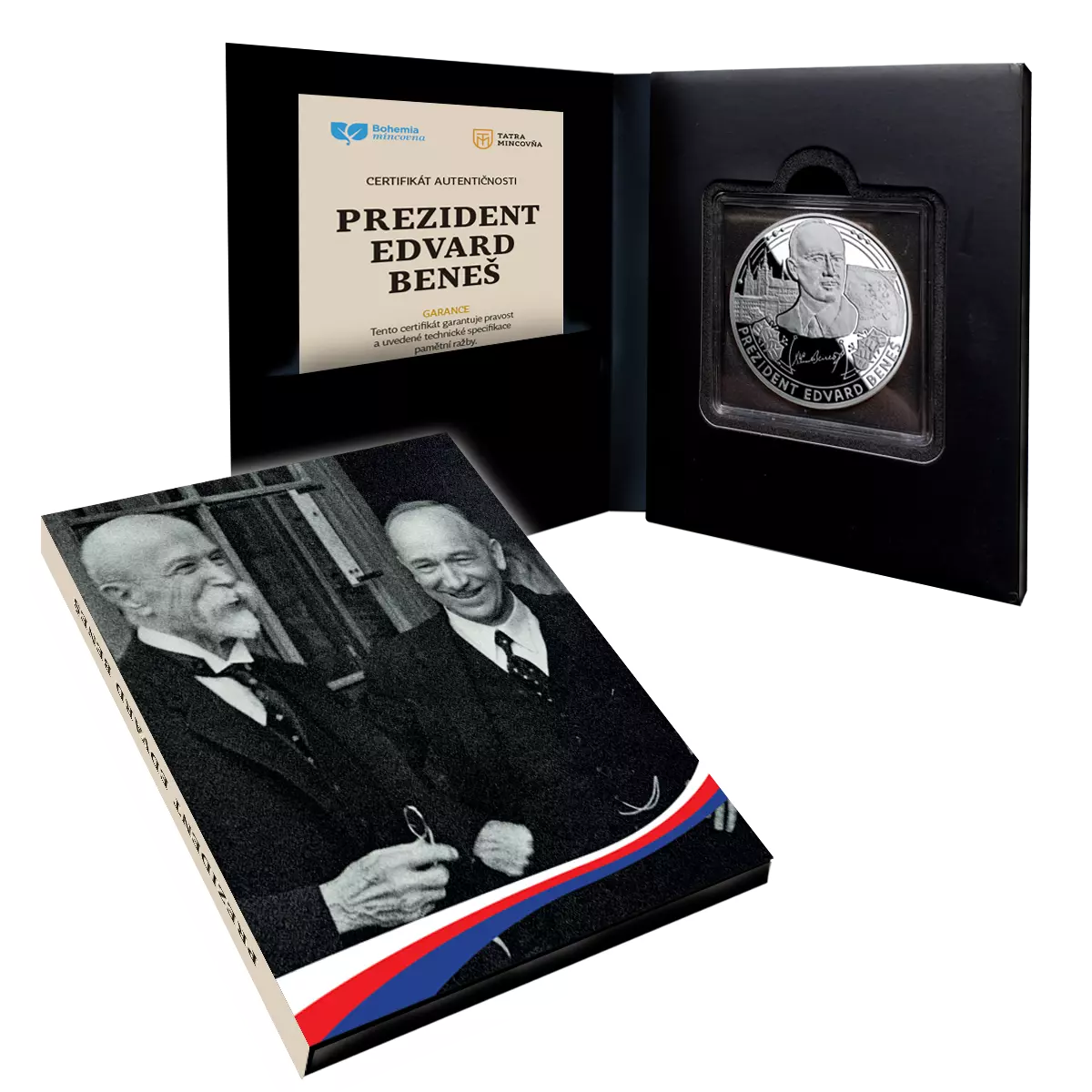 Pamětní ražba z ryzího stříbra 999/1000 s portrétem prezidenta Edvarda Beneše je poctou diplomatovi, realistovi a státníkovi, jenž převzal odpovědnost v jedné z nejtěžších kapitol našich dějin.