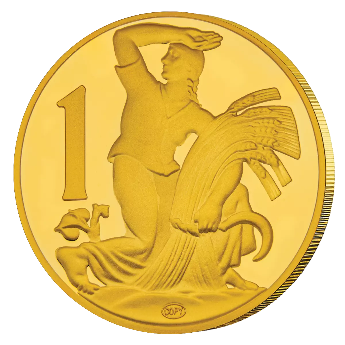 Pamětní ražba, První československá jednokoruna 1922, zušlechtěná ryzím zlatem, oživuje již legendární minci mladé republiky. Jednokoruna z roku 1922 byla vůbec první korunovou mincí nově vzniklého státu a stala se jedním z nejdůležitějších symbolů československé identity.