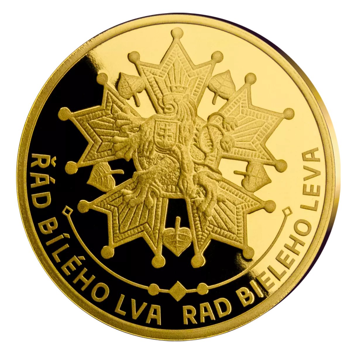 Averz zlaté mince Řád Bílého lva vyobrazuje podobu původního prvorepublikového vyznamenání z roku 1922. Dne 7. prosince toho roku vydala československá vláda nařízení pro používání řádu jako vyznamenání pro osobnosti se zásluhou o Československo. Provedení v ryzím zlatě povyšuje tuto minci na opravdový numismatický skvost s trvalou hodnotou.
