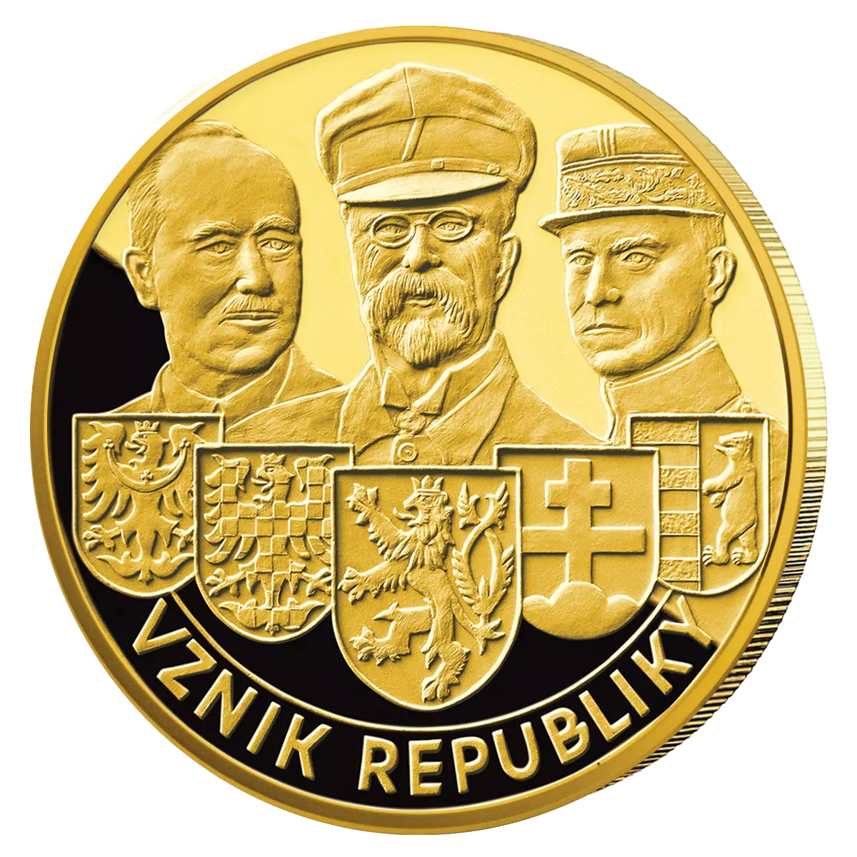 Pamětní ražba Vznik republiky otevírá exkluzivní kolekci Zlatá éra Masarykovy republiky. Objednáním pamětní ražby Vznik republiky si otevíráte fascinující kolekci Zlatá éra Masarykovy republiky. Další pamětní ražby z kolekce obdržíte cca v měsíčním intervalu každou za cenu 990 Kč + 129 Kč poštovné a balné. Kolekce nyní obsahuje 14 kusů ryzím zlatem zušlechtěných ražeb, může se ale v budoucnu rozšiřovat. Více informací o kolekci najdete zde. Podmínky objednávky si můžete přečíst zde.