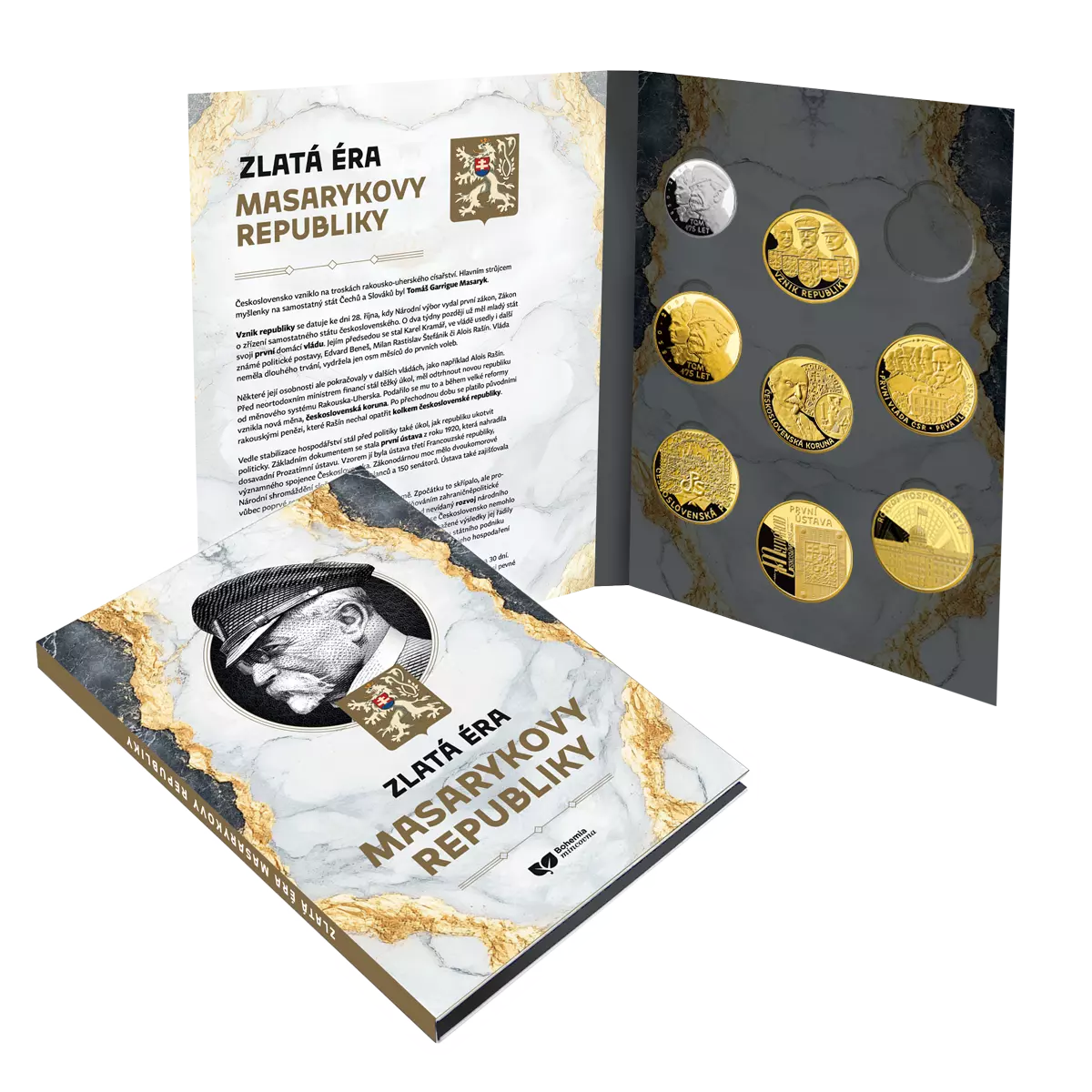Výroční a pamětní ražby ve zcela nové sbírce Zlatá éra Masarykovy republiky nás provázejí nejvýznamnějšími událostmi poválečného období první republiky. Na averzu ražby jsou portréty Masaryka, Beneše a Štefánika, tří zakladatelů československého státu, doplněny znaky pěti zemí, ze kterých se nová republika skládala: Čech, Moravy, Slezska, Slovenska a Podkarpatské Rusi.